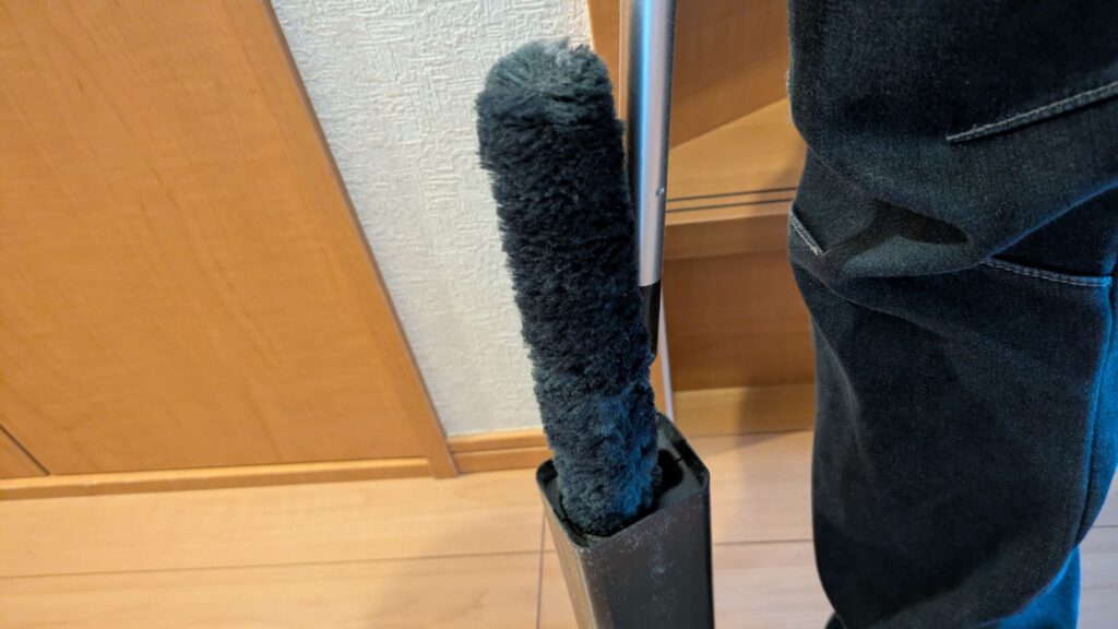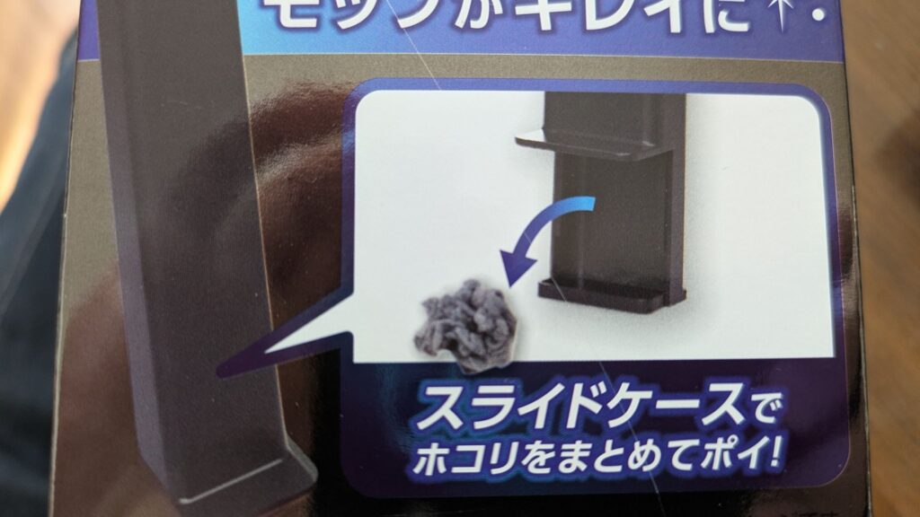 ホコリ除去用のシートがケースのサイドについているので、ケース内にホコリが溜まってくると、モップの先端についたホコリが除去されにくくなります。その場合は、ケース内のホコリを捨てて再びモップを通せばしっかりと除去できます。